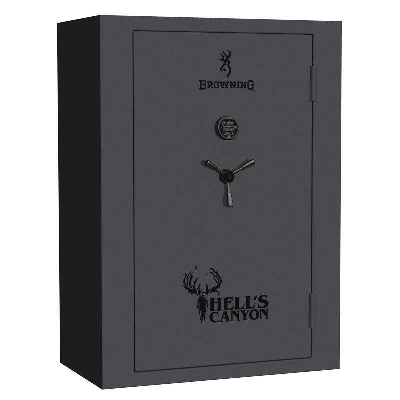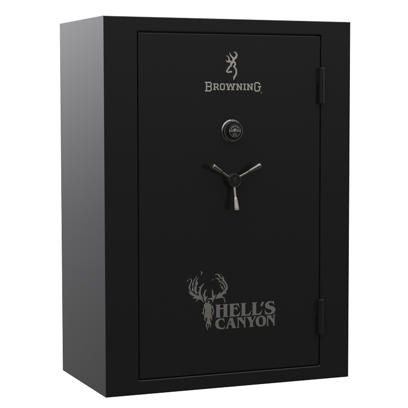As spacious as its name suggests, the Hell's Canyon can keep all your valuables safe‚ locked behind 11-Gauge steel, hardened steel pin lock protection, and Pry-Stop End Bolts. Enjoy American-made craftsmanship, top-of-the-line security technology, adjustable shelving, and for the finishing touch, sleek black chrome hardware.